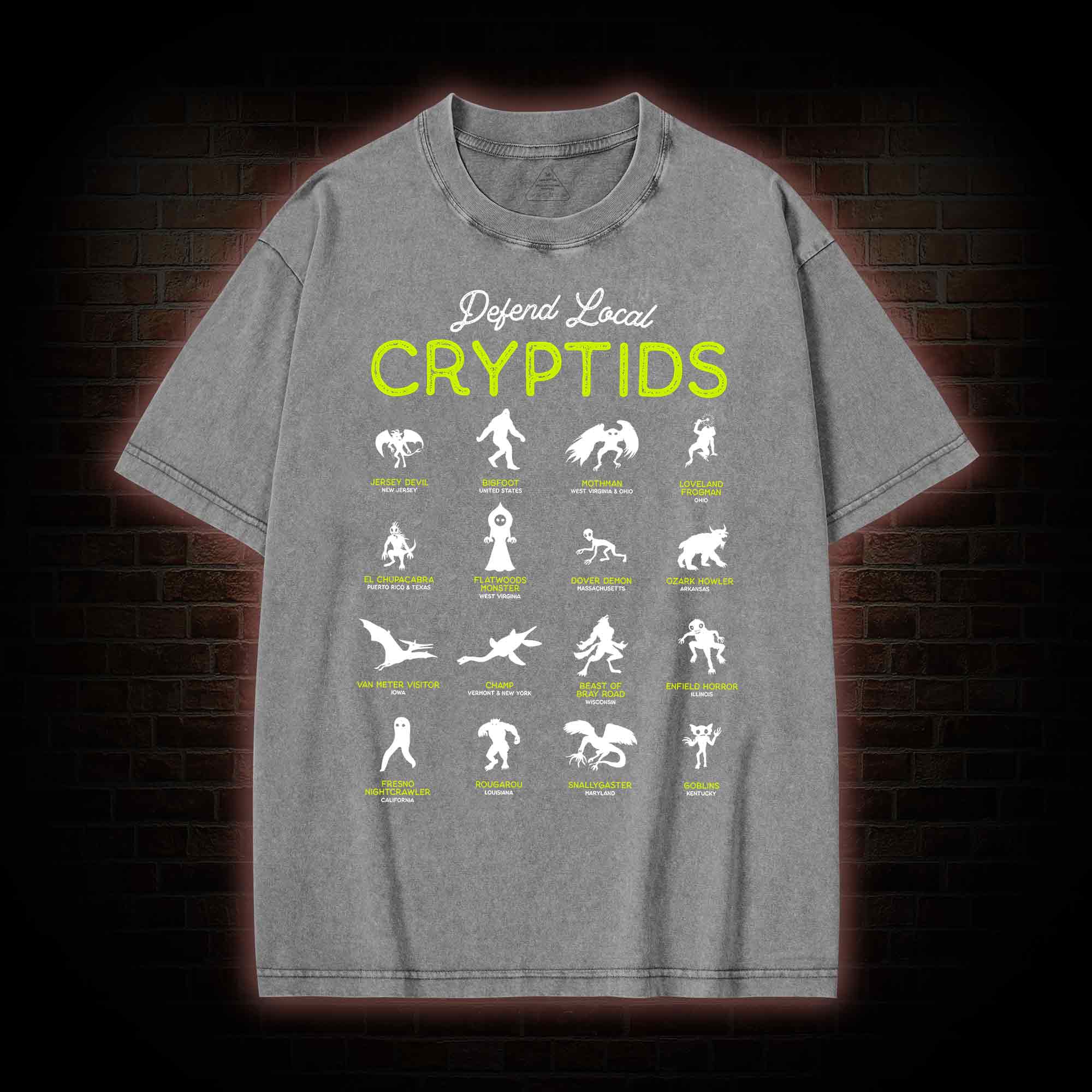Defend Local Cryptids Creature Collection Washed T-shirt