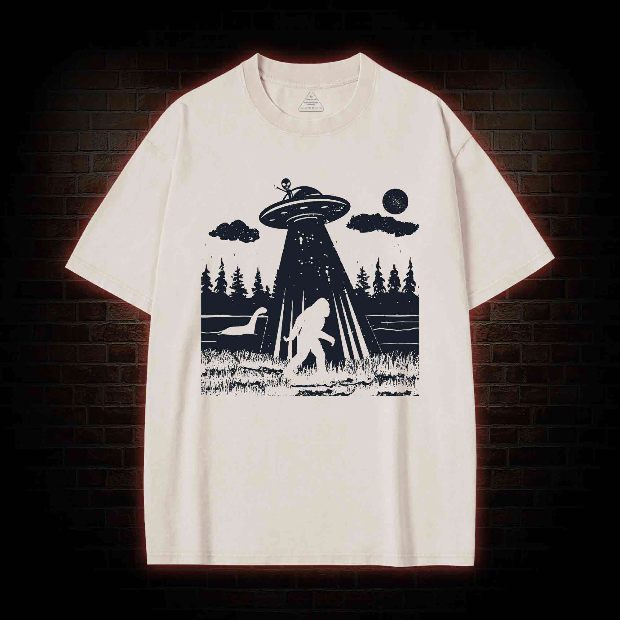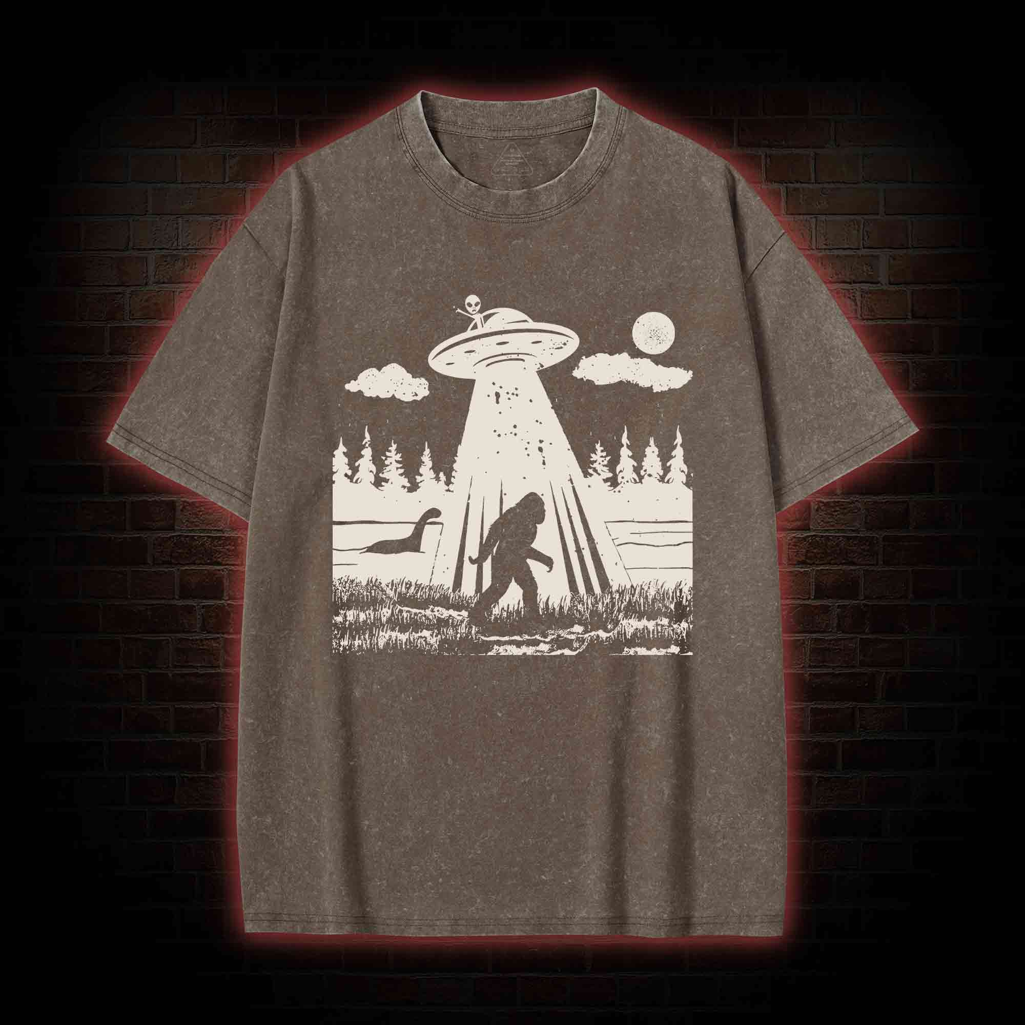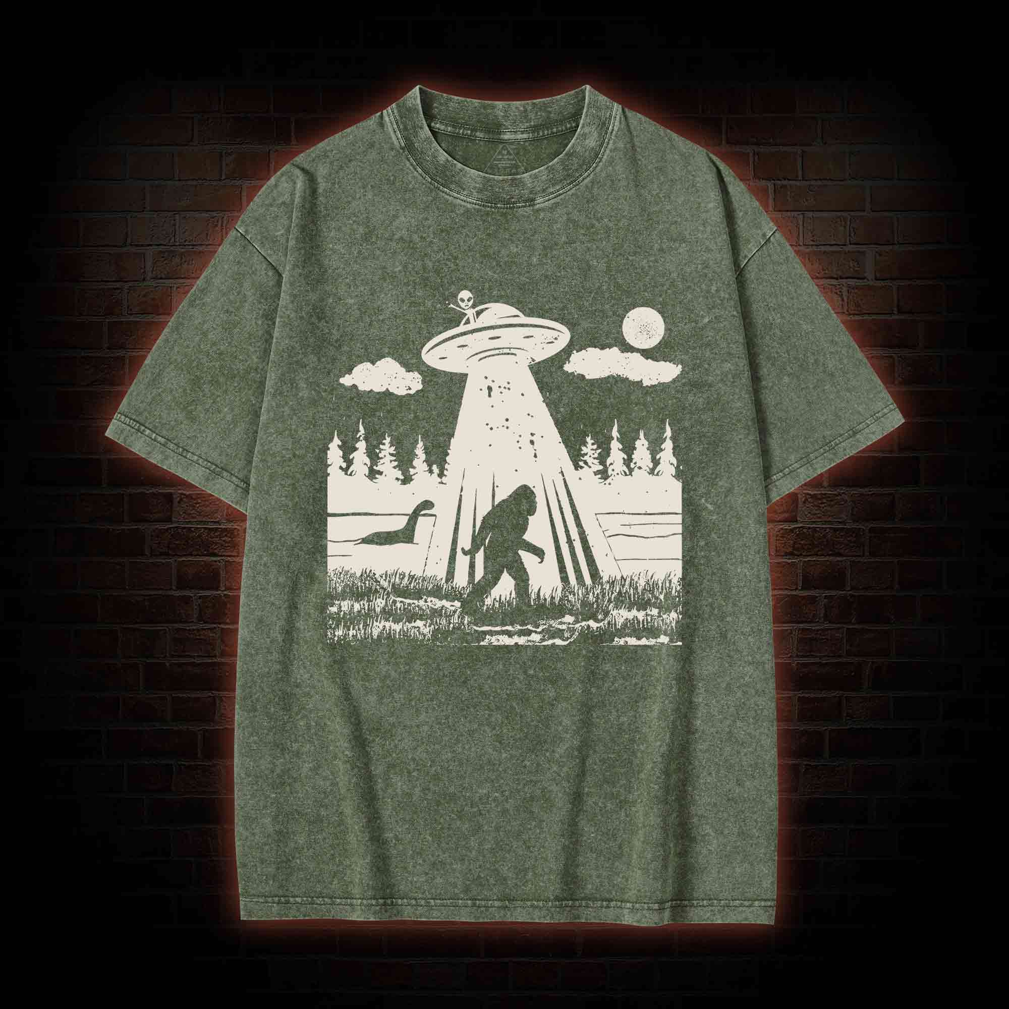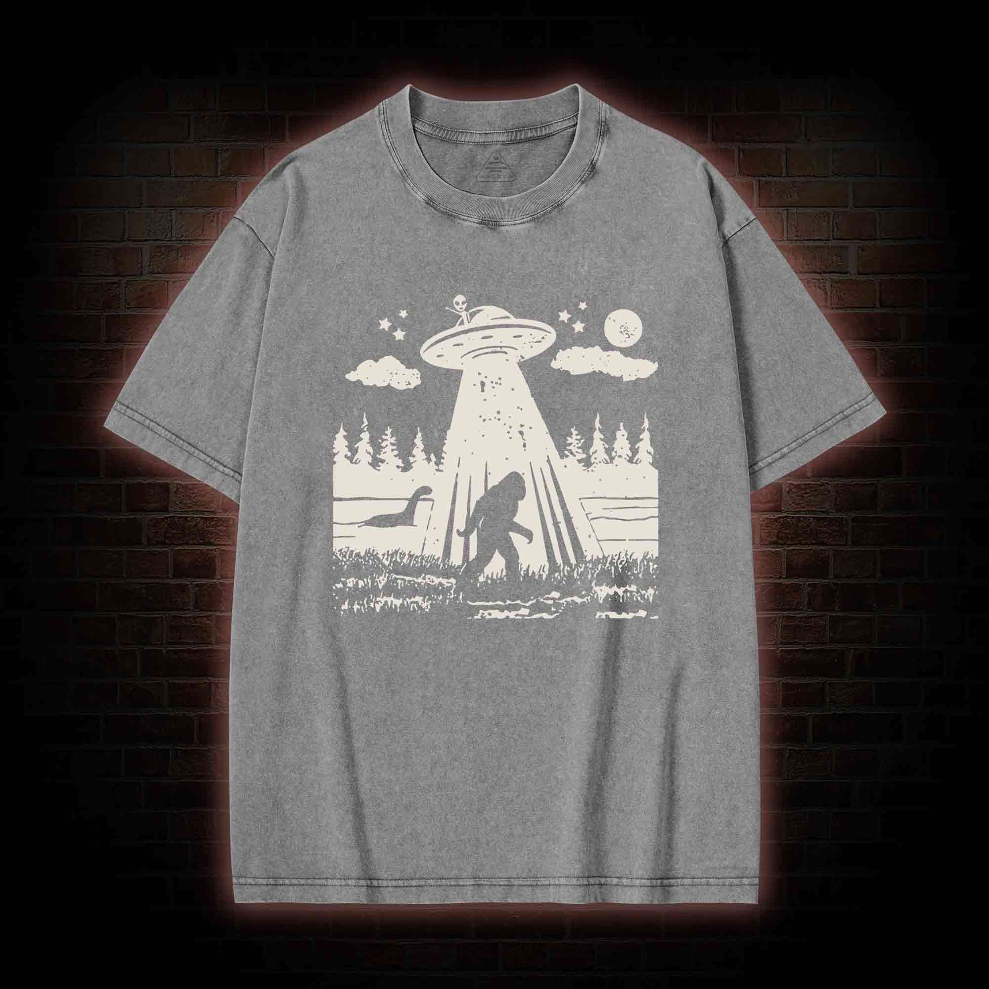 Bigfoot Sasquatch Alien UFO Loch Ness Monster Washed T-shirt