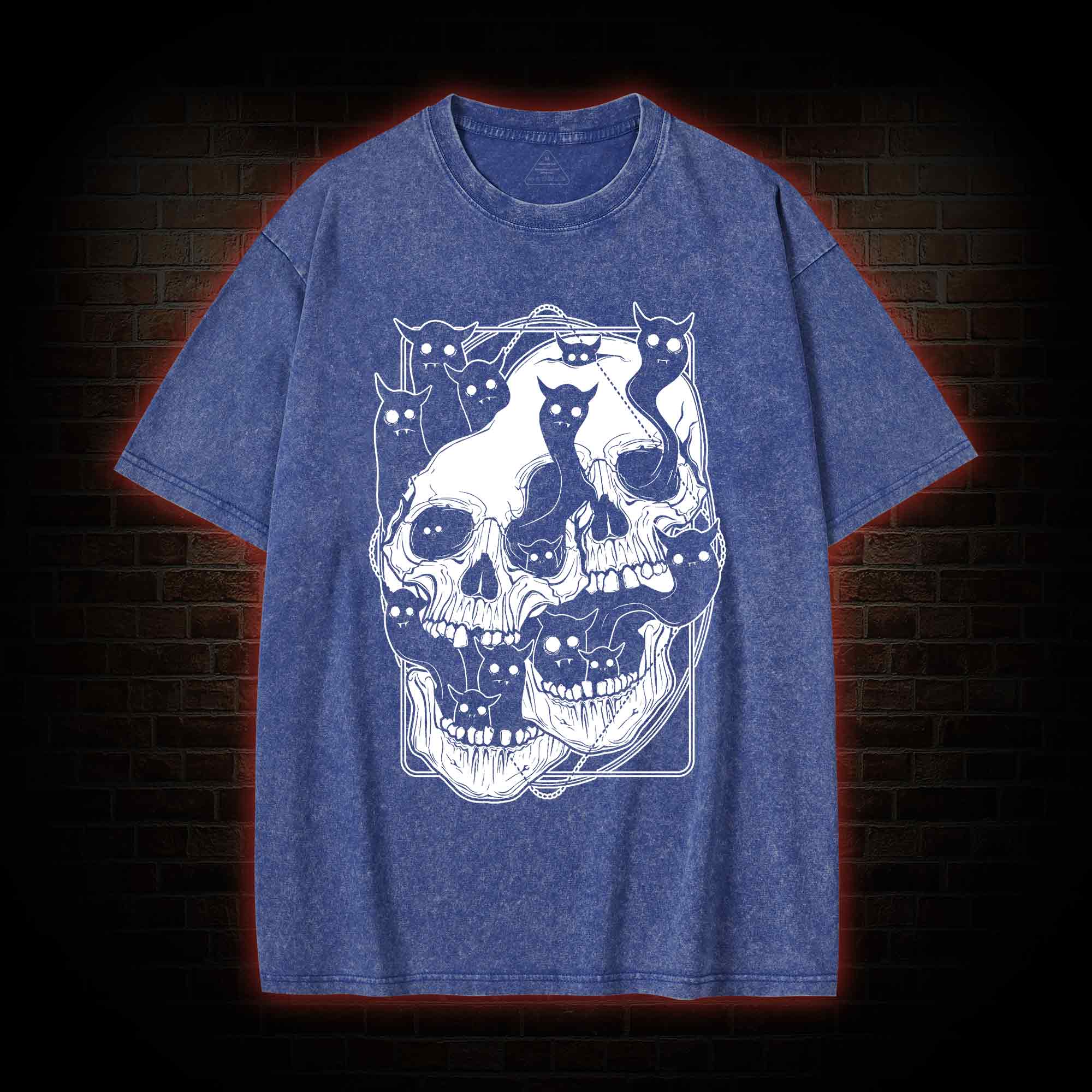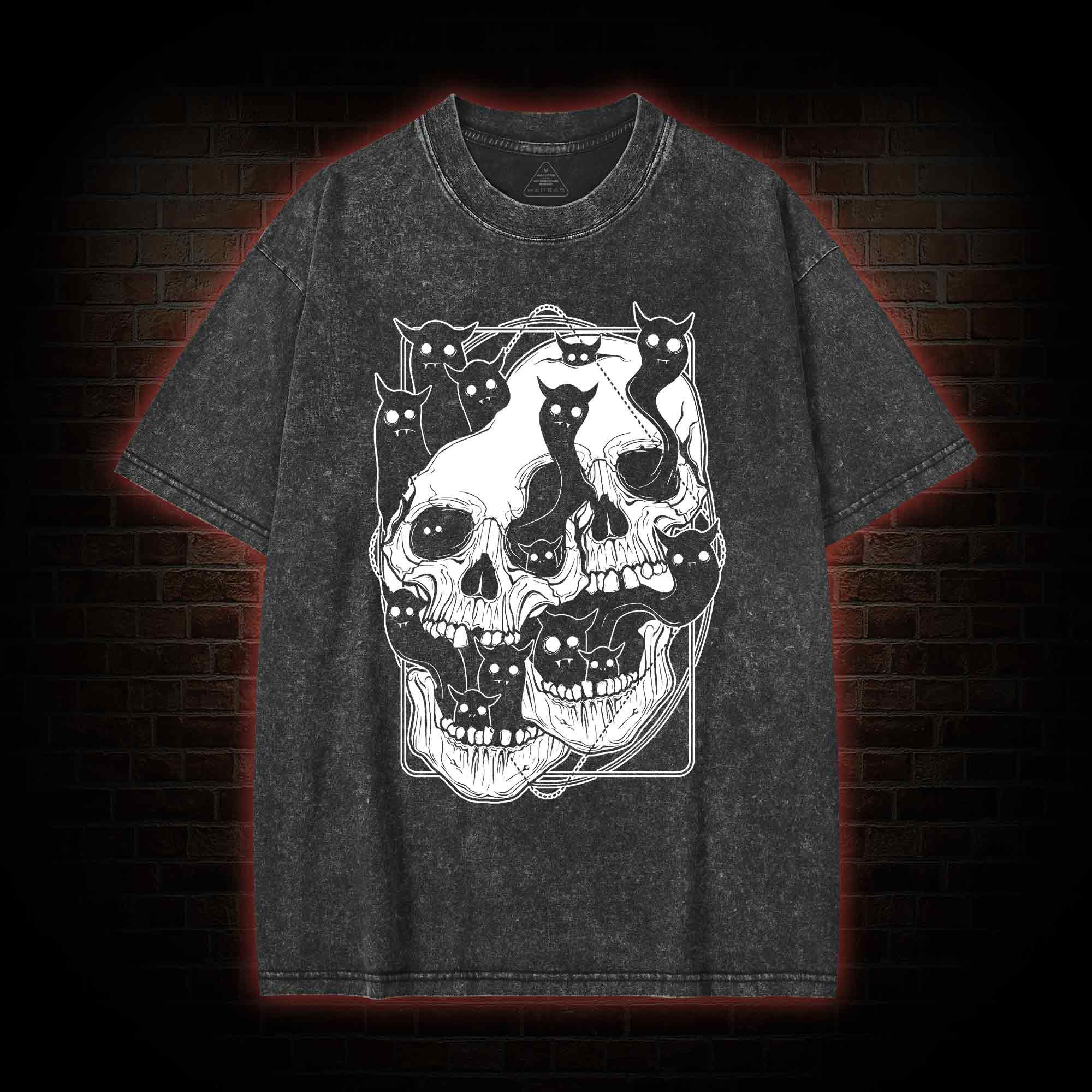 Cat Ghost Double Skull Washed T-shirt